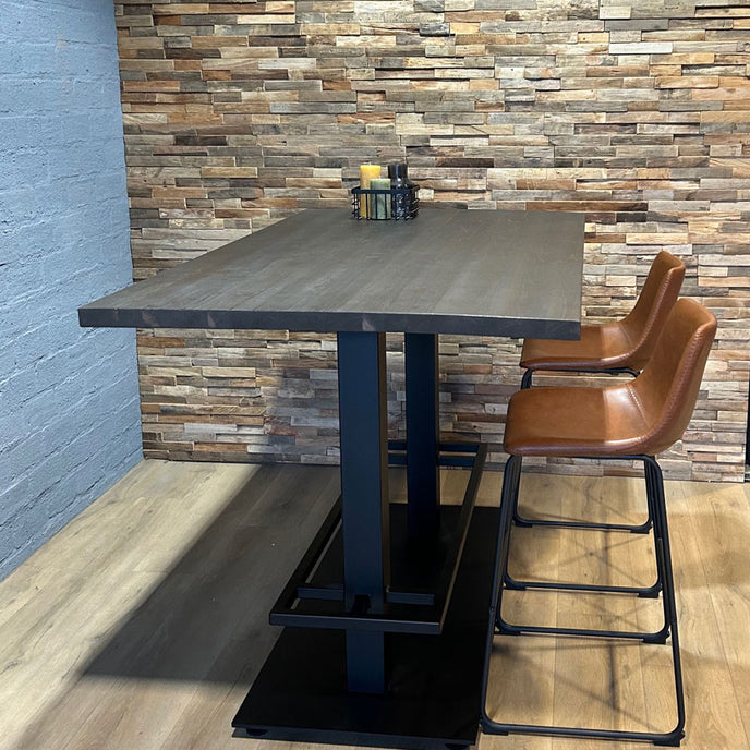 De afmetingen van de hoge bartafel Washington zijn 140 x 100 x 106 cm (lengte x breedte x hoogte). De industriële tafelpoten zijn netjes gelast en voorzien van een zwarte poedercoating. Het blad van vurenhout is massief en heeft een dikte van 4 centimeter. Wil je een andere afmeting? Geen probleem! Neem dan even contact met ons op. Maatwerk voor de hoge bartafel is namelijk mogelijk.