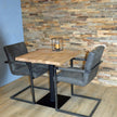 De horeca tafel Vierkant is uitsluitend geschikt voor gebruik binnenshuis. Regen, zon en vocht kunnen het eikenhout en stalen onderstel beschadigen, waardoor buitengebruik wordt afgeraden. Binnen biedt de tafel optimale stabiliteit, veiligheid en een stijlvolle uitstraling die bijdraagt aan de sfeer van iedere professionele ruimte.