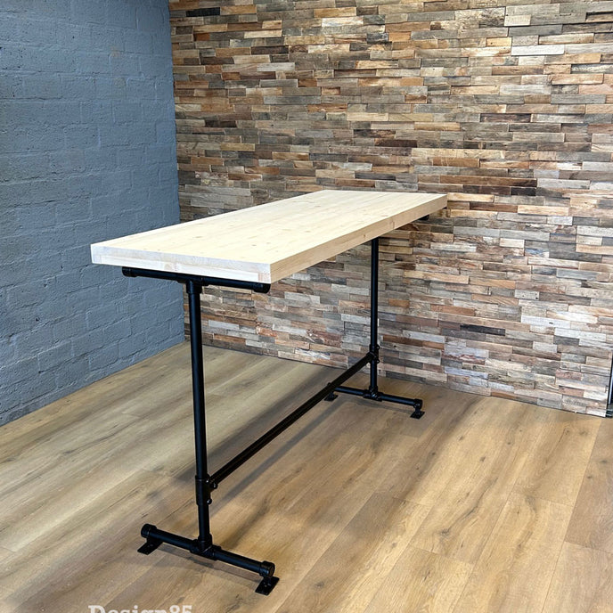 De industriële bartafel Klassiek. Met een uniek onderstel van zwarte steigerbuizen en een tafelblad van vurenhout is dit een prachtige bartafel. De bartafel is in diverse afmetingen en kleuren te bestellen en de totale hoogte bedraagt 108 cm. De bartafel kan op maat worden gemaakt, vraag vandaag je maatwerk bartafel nog aan!