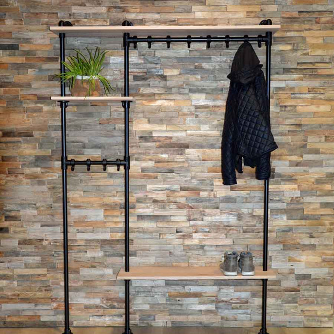 Bestel de Industriële Kapstok Ferm eenvoudig via onze webshop en ontvang je bestelling doorgaans binnen 10 - 14 werkdagen.DESIGN85 rekent nooit verzendkosten binnen Nederland, waardoor je altijd precies weet waar je aan toe bent. De Industriële Kapstok Ferm wordt als bouwpakket geleverd met een duidelijke handleiding en alle benodigde materialen. Hierdoor staat jouw nieuwe meubel in no-time op de juiste plek. Wil je meer weten over maatwerk, montage of de levering? Neem gerust contact met ons op — we denken graag met je mee.