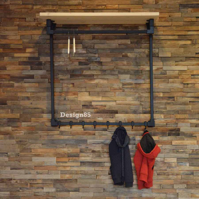 Wil je een ruime en industriële kapstok die geschikt is voor de gehele familie? DESIGN85 heeft deze stoere kapstok in het assortiment! De kapstok bestaat uit stalen kokers en een legplank die leverbaar is in diverse kleuren. De kapstok is in diverse afmetingen verkrijgbaar en de totale hoogte bedraagt 97 cm. De kapstok kan op maat worden gemaakt, vraag vandaag je maatwerk kapstok nog aan!