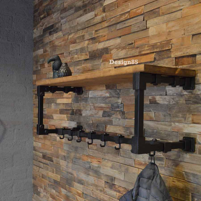 Een moderne en unieke kapstok met diverse haken en een legplank. Je kunt de kapstok Pront helemaal zelf samenstellen!