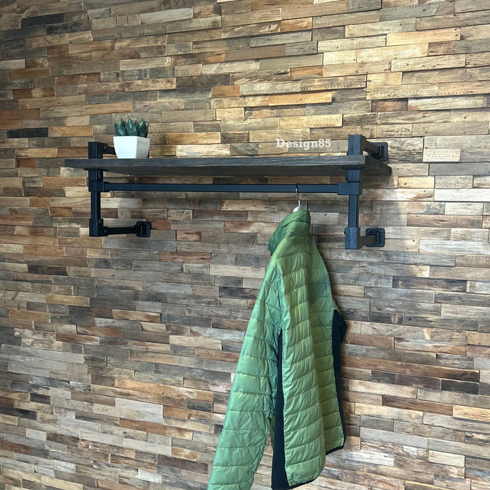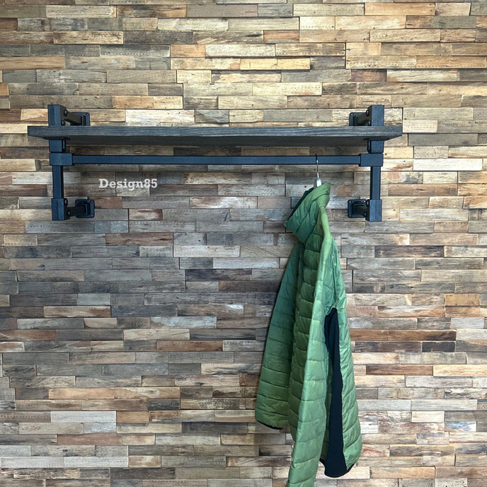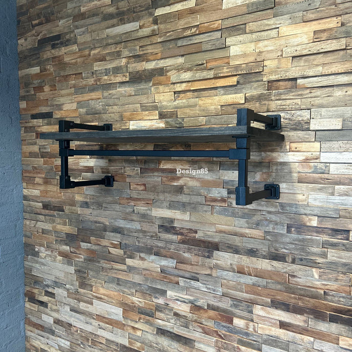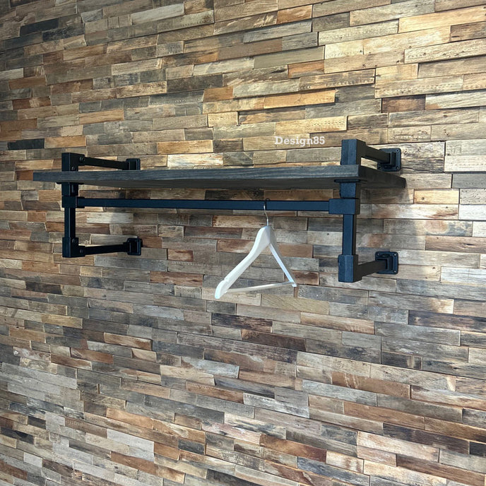 De steigerbuis kapstok Klerenhanger is geschikt voor iedere garderobe. De kapstok steigerbuis met hoedenplank bestaat uit zwarte steigerbuizen en een legplank, die geschikt is voor kledinghangers. De kapstok kan op maat worden gemaakt, vraag vandaag je maatwerk kapstok nog aan!