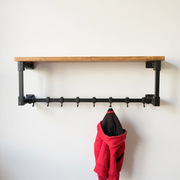Afmetingen van de Kapstok Zwart Metaal Hoedenplank