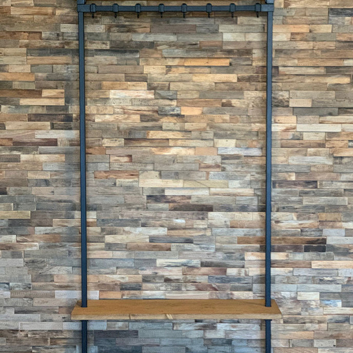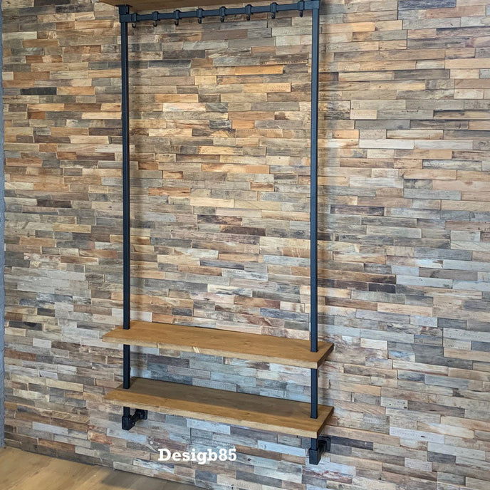 De kapstok metaal zwart zweef is een unieke kapstok met legplanken en is geschikt voor iedere garderobe. De kapstok bestaat uit industriële, metalen kokers die zijn voorzien van een zwarte poedercoating. De totale hoogte bedraagt 210 cm en de kapstok kan op maat worden gemaakt, vraag vandaag je maatwerk kapstok nog aan!