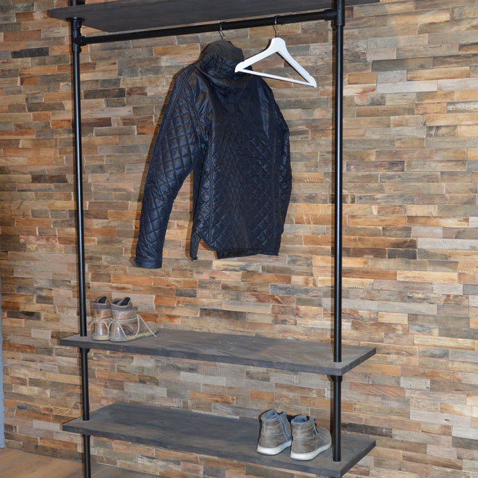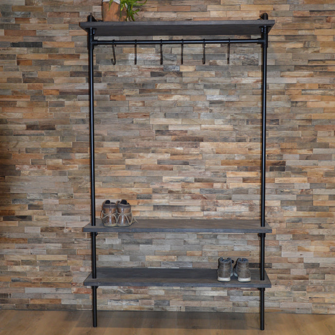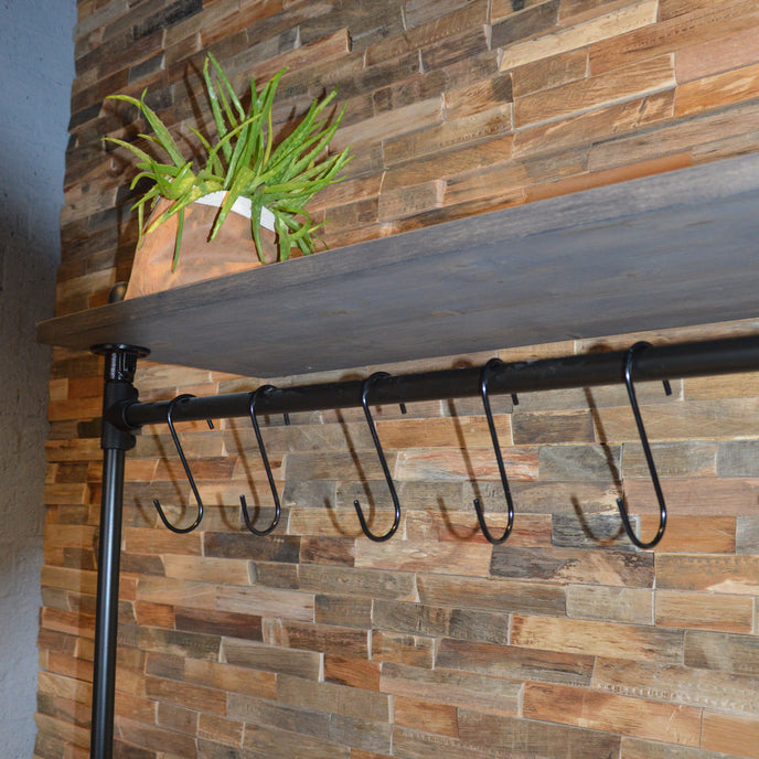 De steigerbuis kapstok Fiks is een unieke en stoere kapstok die past in ieder interieur. De kapstok is geschikt om kledinghangers aan op te hangen. De kapstok is leverbaar in diverse afmetingen, de totale hoogte bedraagt 205 cm. De kapstok kan op maat worden gemaakt, vraag vandaag je maatwerk kapstok nog aan!