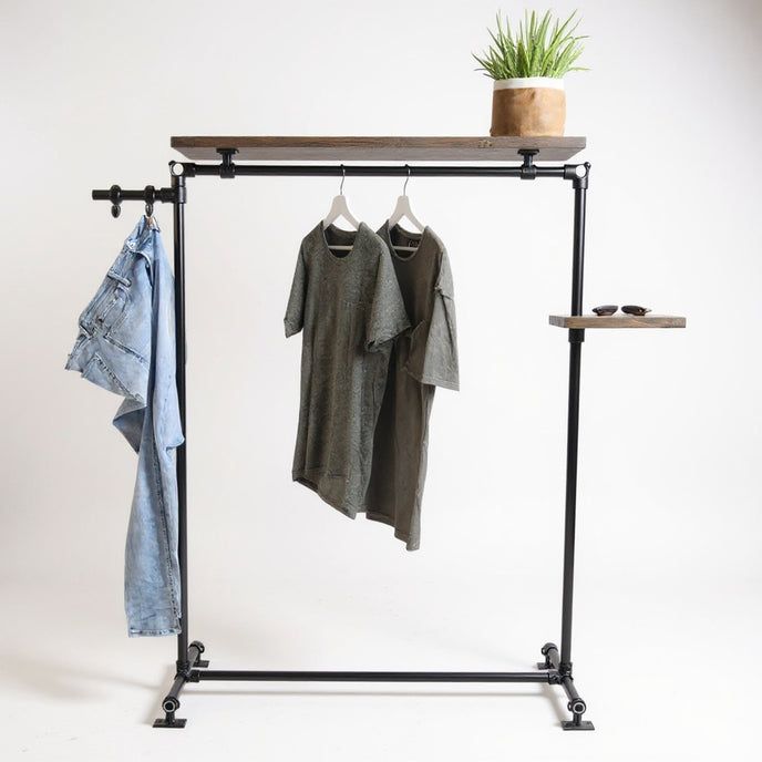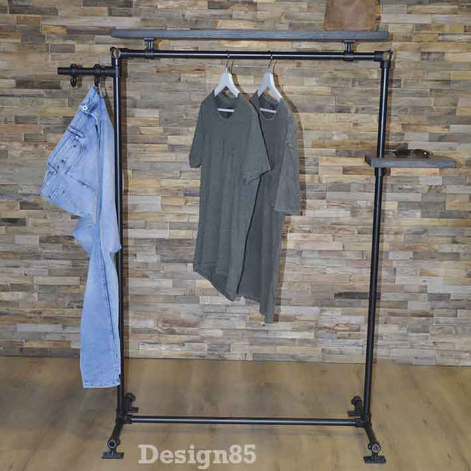 Altijd al op zoek geweest naar een industrieel kledingrek voor op de slaapkamer? Dan is dit unieke steigerbuis kledingrek Hot van DESIGN85 echt iets voor jou! Het kledingrek is multifunctioneel. Het kledingrek is in diverse afmetingen te bestellen en de totale hoogte bedraagt 150 cm. Het kledingrek kan op maat worden gemaakt, vraag vandaag je maatwerk kledingrek nog aan!