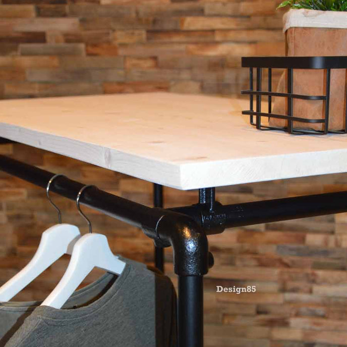 Ons steigerbuis kledingrek Pikant biedt veel ruimte voor kledingstukken en is daarmee erg geschikt voor kledingwinkels. Het biedt voldoende ruimte voor kleding en schoenen. Het kledingrek is in diverse afmetingen en kleuren te bestellen en de totale hoogte bedraagt 135 cm. Dit kledingrek kan op maat worden gemaakt, vraag vandaag je maatwerk kledingrek nog aan!