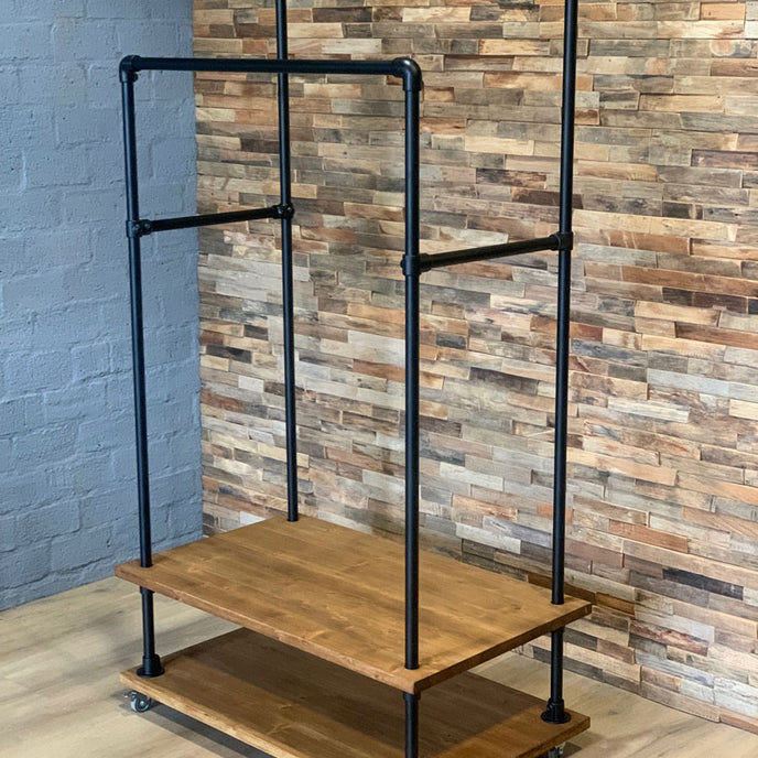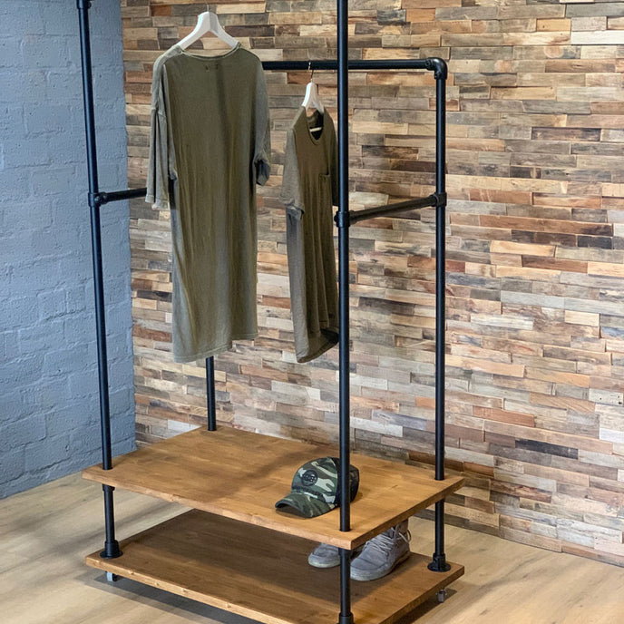 Welke afmetingen heeft het steigerbuis kledingrek Winkel?