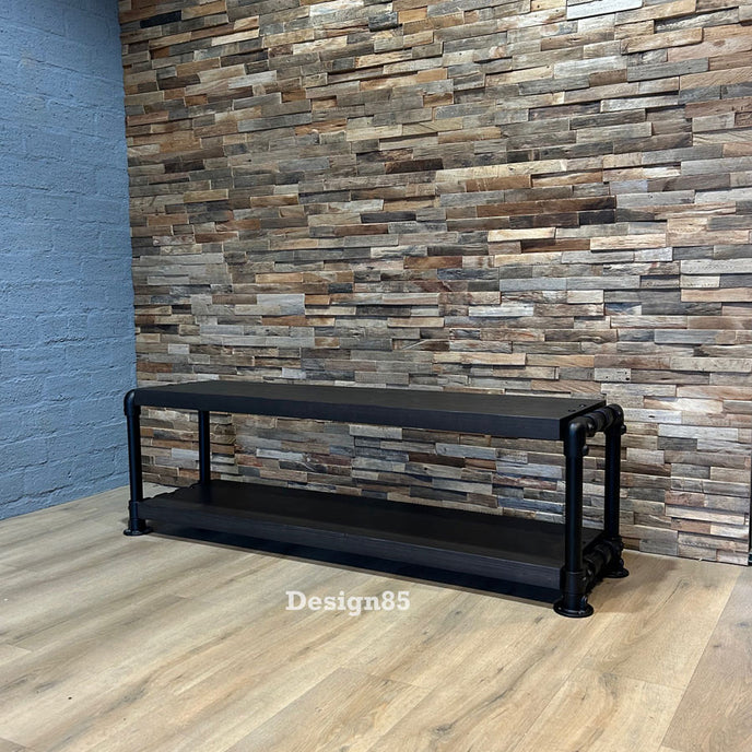 Hoe wordt het steigerbuis TV meubel geleverd?