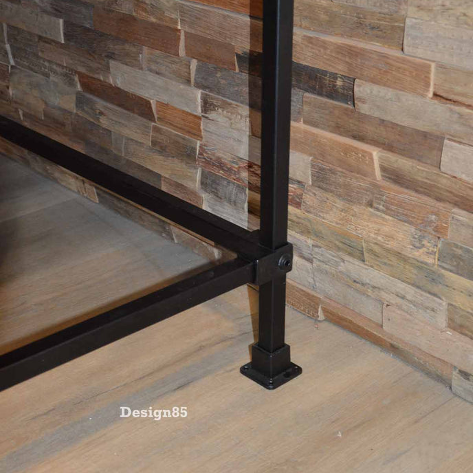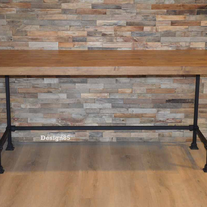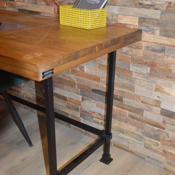 Het vintage bureau type Metaal heeft een afmeting van 160 x 60 x 76 centimeter (lengte x breedte x hoogte). Het bureaublad van de vuren timmerpanelen is opgedikt en heeft een totale dikte van 5.5 centimeter. Het frame bestaat uit stalen kokers (2.5 x 2.5 centimeter) en zijn voorzien van een zwarte poedercoating. Staat de gewenste afmeting van het industrieel bureau niet vermeld, neem gerust contact met ons op want iedere afmeting is mogelijk.