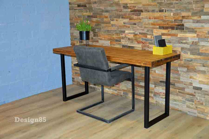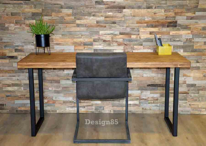 Aan dit sterke vintage bureau kun je heerlijk aan werken of studeren. Een uniek bureau vanwege de industriële stalen poten. Leverbaar in diverse kleuren.