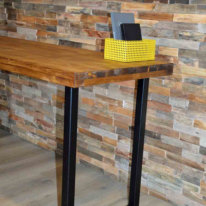 Het vintage bureau Puik heeft stoere en robuuste tafelpoten, hierdoor is het vintage bureau een eye catcher van de werkkamer of slaapkamer. Het tafelblad bestaat uit vuren timmerpanelen die kunnen worden voorzien van een wax, waardoor het tafelblad een unieke uitstraling heeft. Je hebt de keuze uit zwart, wit en bruin. Het tafelblad wordt twee keer afgelakt met een transparante laklaag, waardoor het tafelblad een extra bescherming krijgt. Verder zijn de vierkante tafelpoten voorzien van een zwarte poedercoating, waardoor je werkplek een unieke look krijgt.